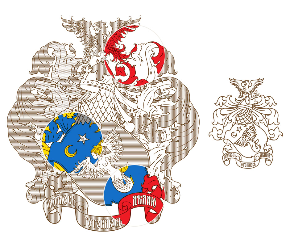 I have been interested in heraldry for a long time. In addition, it turned out that modern Russian laws do not restrict the right to own a coat of arms. That is, any citizen of the Russian Federation has the right to do so, and is not even obliged to register his coat of arms anywhere. For me personally, it became an exercise in an area of interest to me. I perceived this project as the development of a family logo, limited by certain stylistic frameworks.