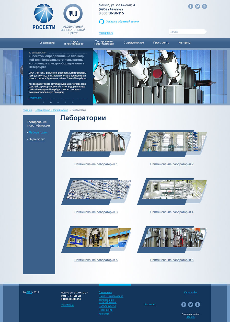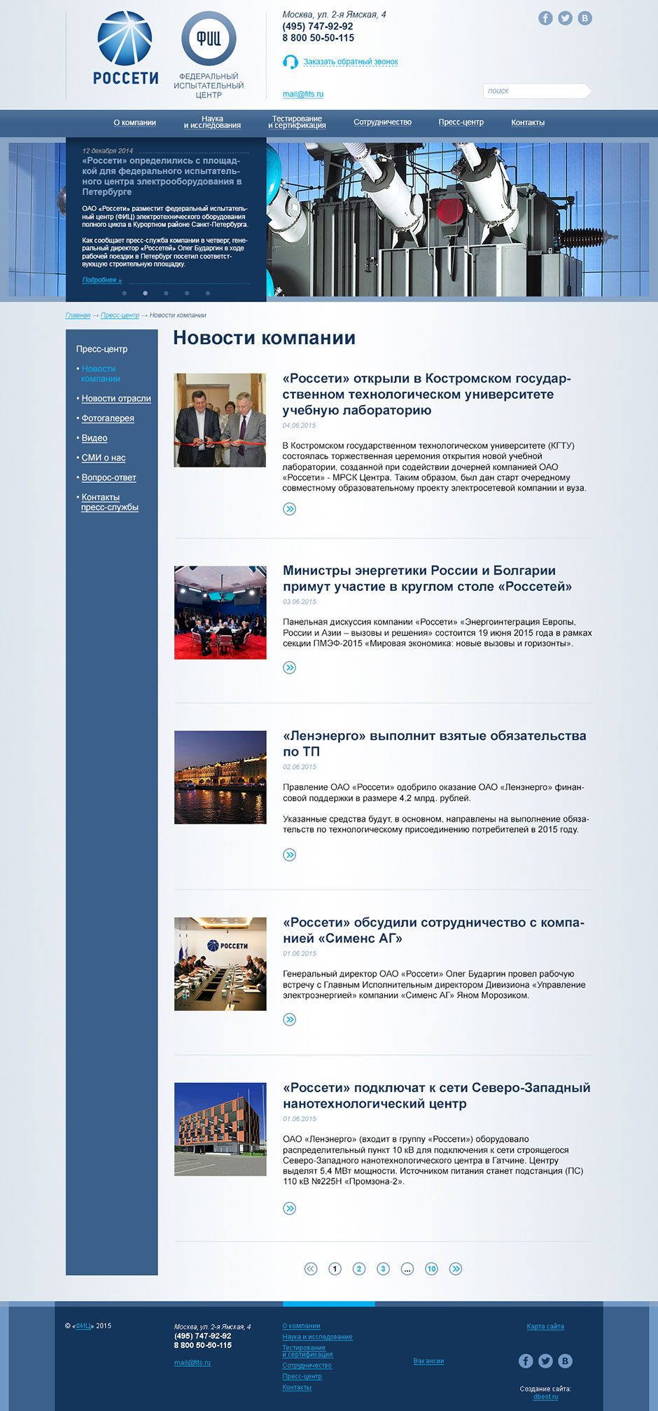 The public joint-stock company "Federal Testing Center" is part of the "Rosseti" company group. The main activity of the project is the development of integrated development programs (KPR) for networks and networks of voltage of 35 kV and higher and programs for the development of the electric power industry of the constituent entities of the Russian Federation.