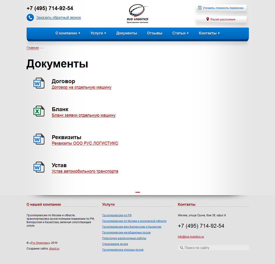 Transport company "Rus Logistics" carries out cargo transportation within the country and abroad by separate (full) vehicles. The company's vehicle fleet consists of vehicles of various carrying capacity (from "GAZelle" to trucks) and allows you to transport consignments of goods of any weight and dimensions.